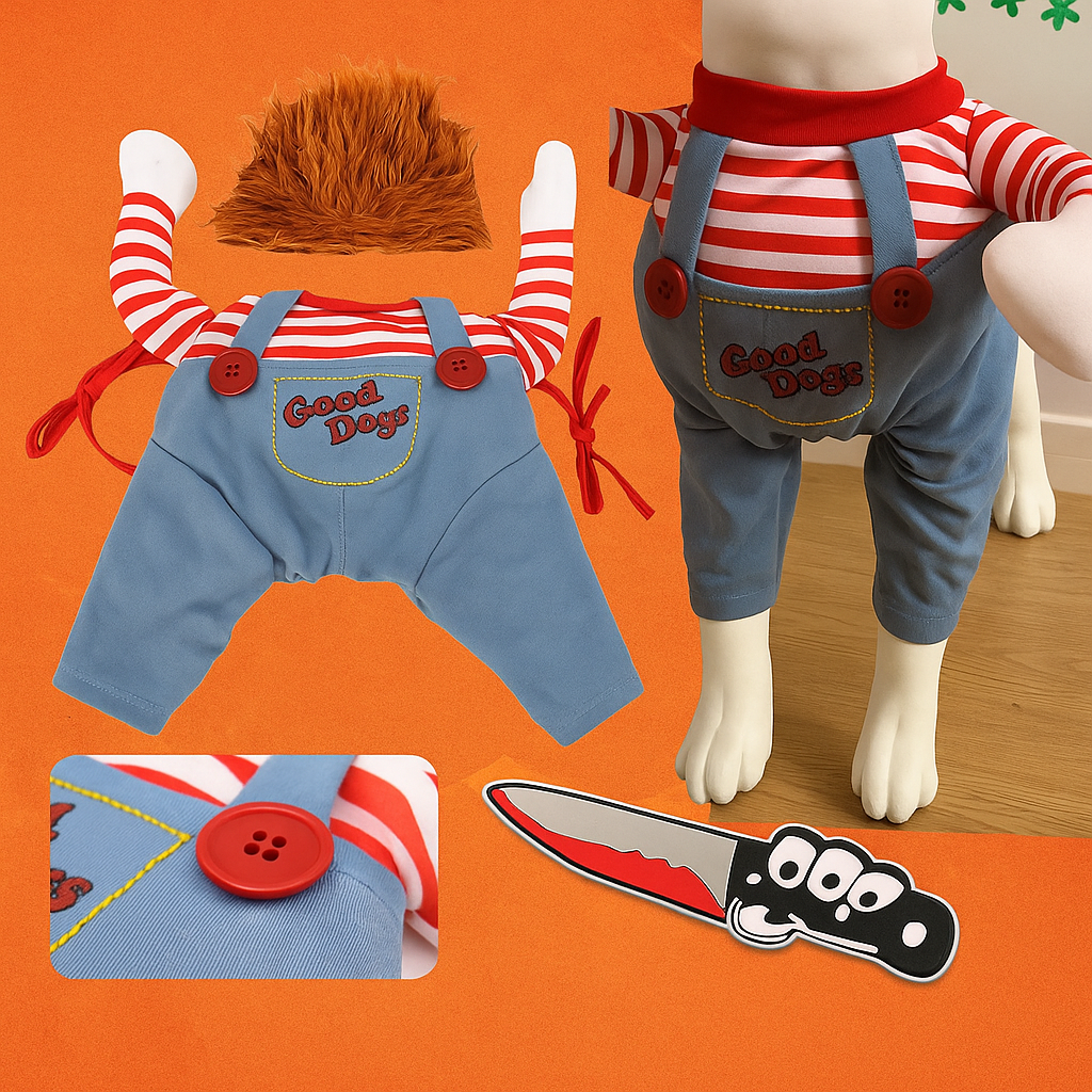 Disfraz de Halloween para Perros con Cuchillo — Cosplay Divertido, Ajustable y Cómodo